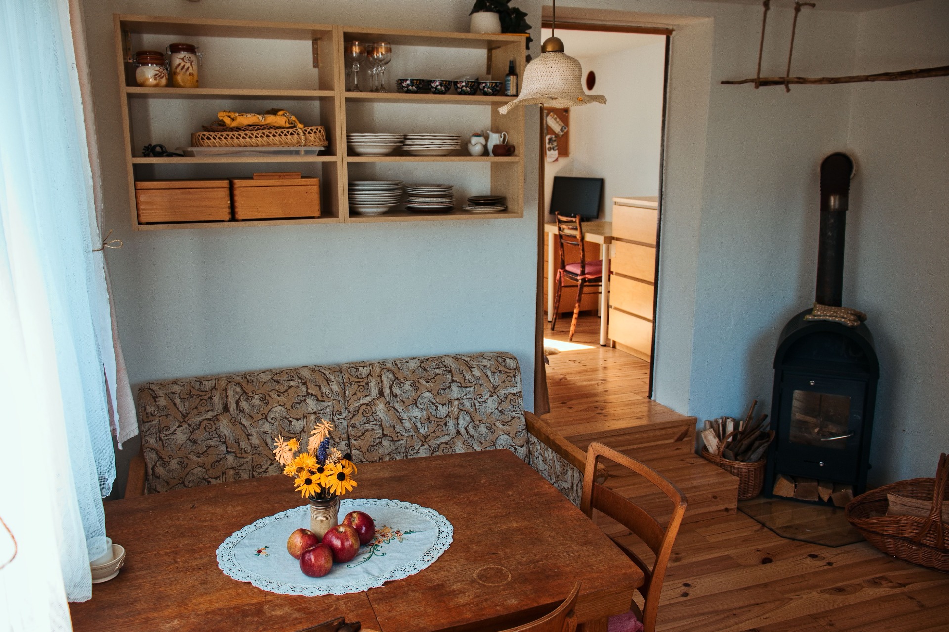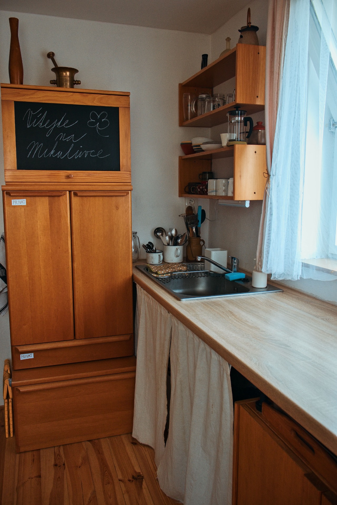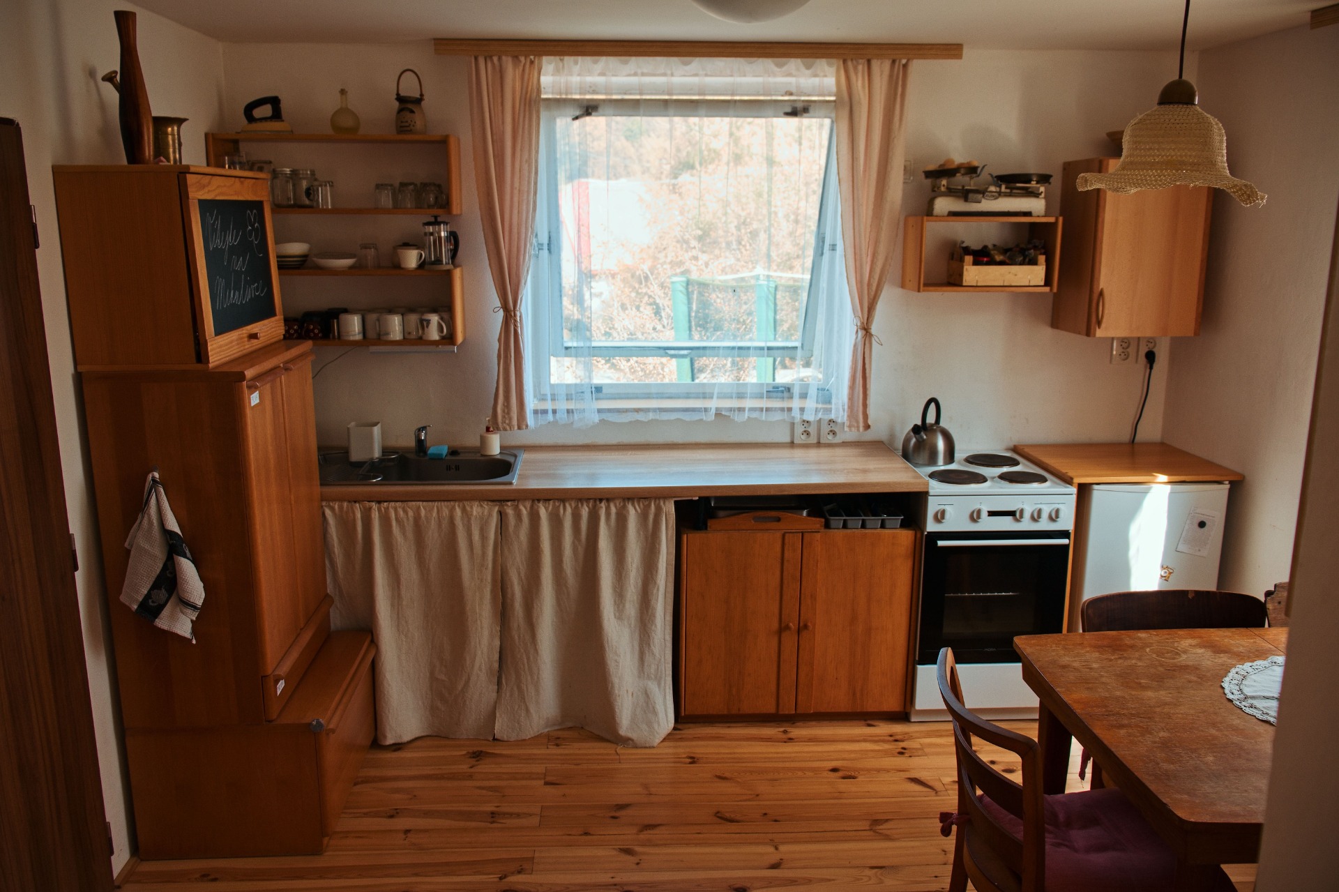 - plně vybavená kuchyň (lednice, sporák, trouba, konvice, tyčový mixér a dostatek nádobí)
